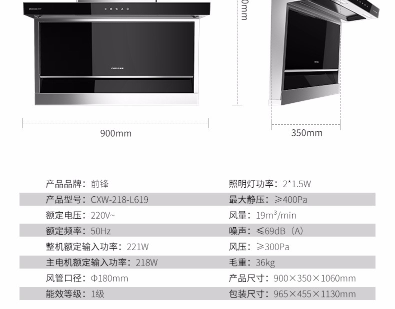 前鋒平板雙吸油煙機L619