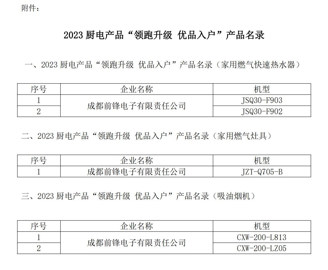 國貨優(yōu)品 就是信得過的產品︱前鋒廚電入選“領跑升級 優(yōu)品入戶”產品名錄